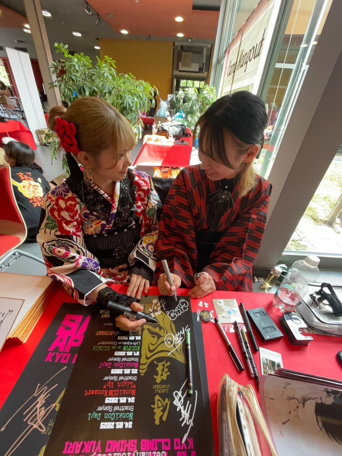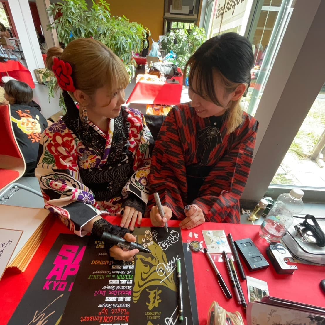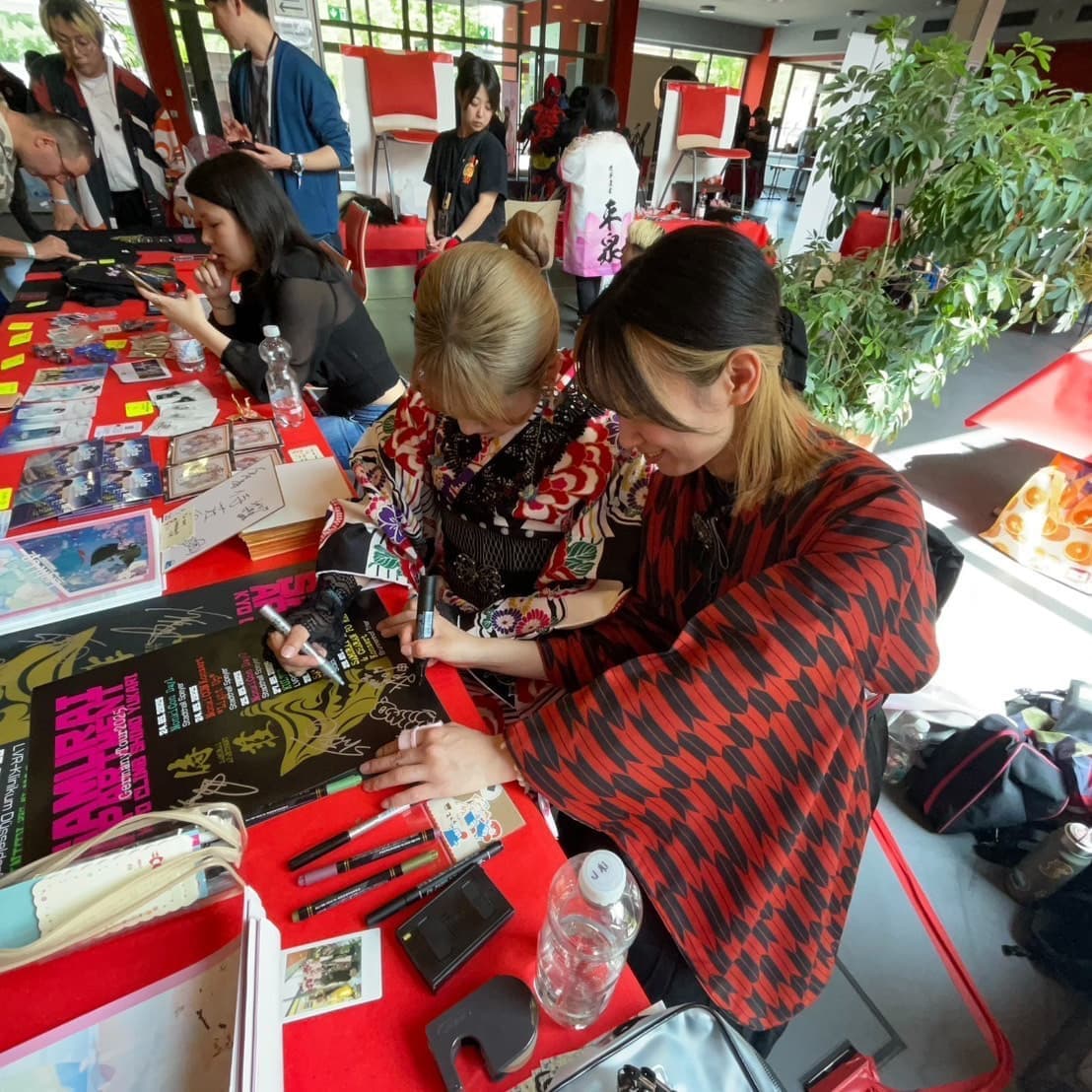 サイン書いてます私たち