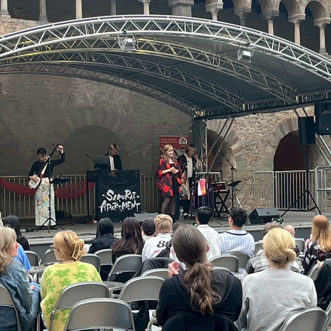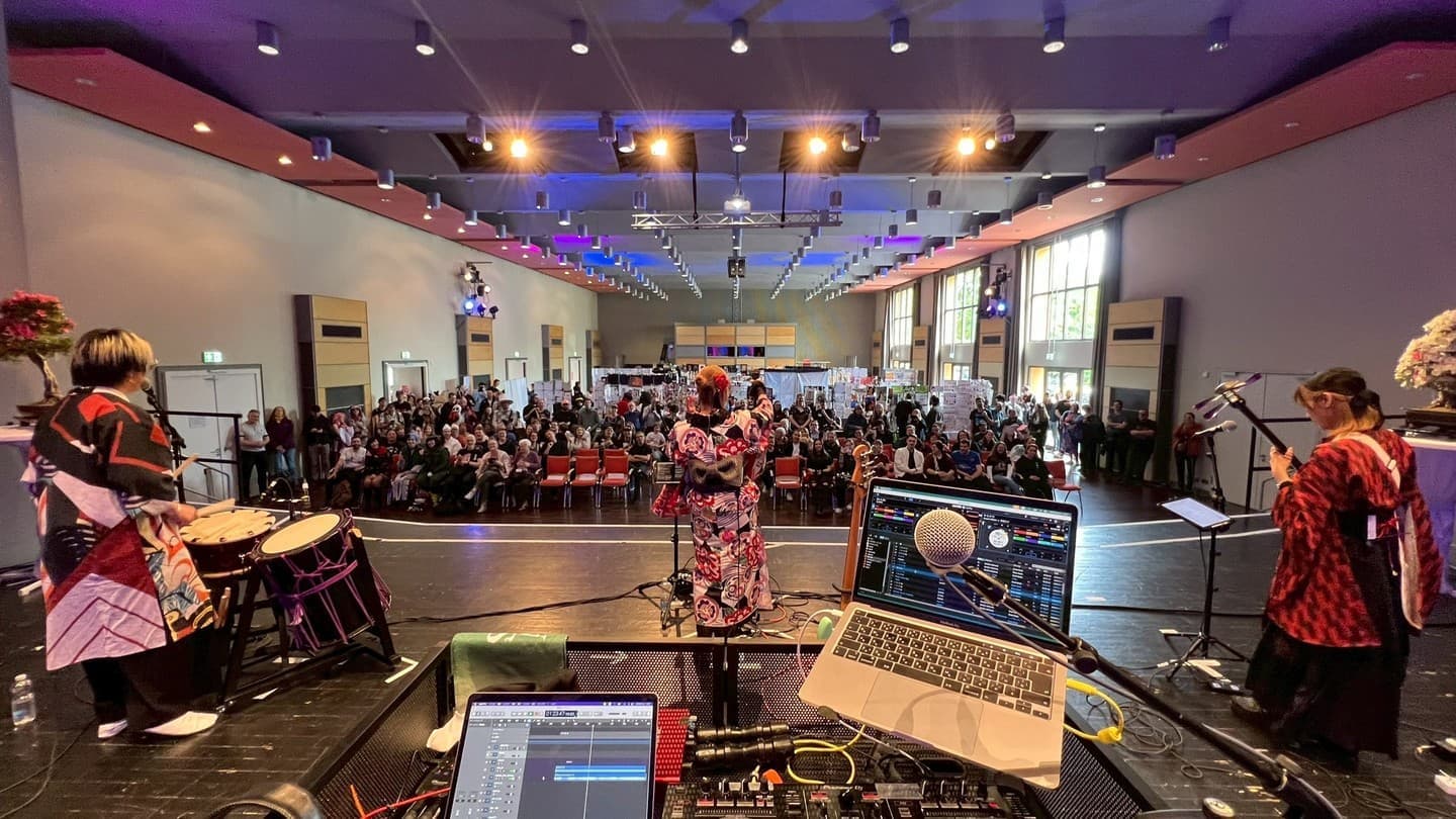 昨年は自分達も海外公演という新しい「門」を久々という意味で主催されるNonki Conから「Gate」を1曲目にお送りしました。今年はドイツの皆さんを痺れさせてほしいということで「稲妻」のリクエストをいただきましたので演奏しました。