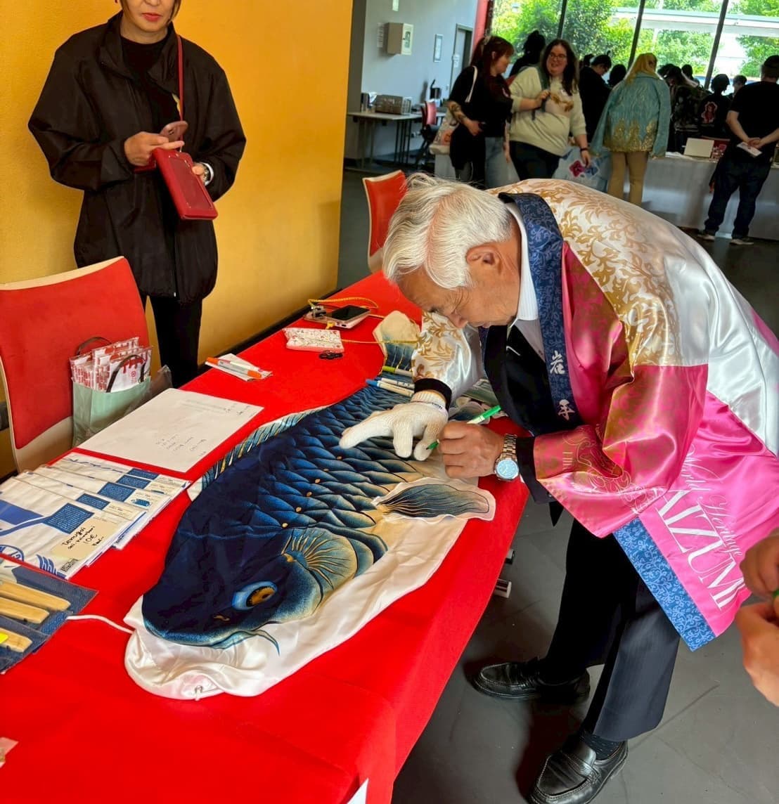 最初からプログラムされていたものではなく、昨年キャンパスで演奏させていただいた時に学生の方から「MCでお話ししていた東日本大震災や青い鯉のぼりプロジェクト」についてもっと詳しく教えてほしい」という話があり、彼女は卒業制作で「青い鯉のぼりの絵本」を作りたい!と言ってくれました。