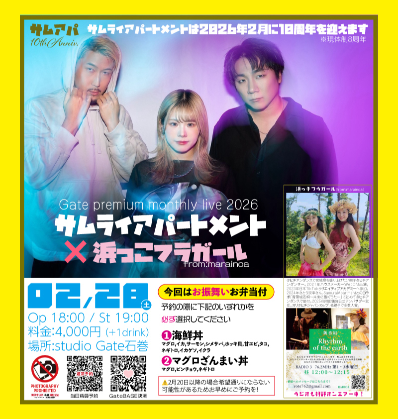 SAMURAI APARTMENTもコラボライブなどを行うMarainoa。